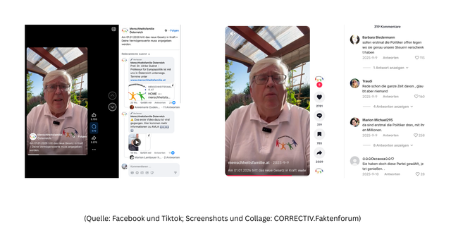 In einem viralen Facebook-Video behauptet ein Mann, dass ab dem 1. Januar 2026 in der Europäischen Union ein neues Gesetz zur Vermögensaufzeichnung gelte. Demnach müssten alle EU-Bürgerinnen und -Bürger ihre Vermögenswerte wie Immobilien, Bargeld, Bankguthaben, Fahrzeuge, Schmuck und Edelmetalle melden. Im Video wird zudem behauptet, dass der Staat im Falle eines Lastenausgleichs auf dieses Vermögen zugreifen könne, um staatliche Schulden zu begleichen. Das Video wird auch in anderen sozialen Netzwerken verbreitet, etwa X und Tiktok. In den Kommentaren ist von „staatlicher Enteignung“ und der EU als „größte Diktatur“ die Rede.