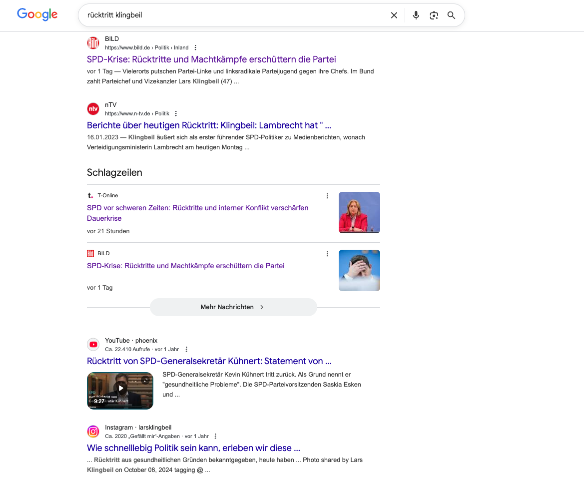 „Exekutionsakt“, „Demütigung“, „Schock“: Diese Youtube-Videos strotzen vor zugespitzten Formulierungen, doch Belege liefern sie nicht. Die angebliche Nachricht zum Rücktritt von Lars Klingbeil ist frei erfunden.